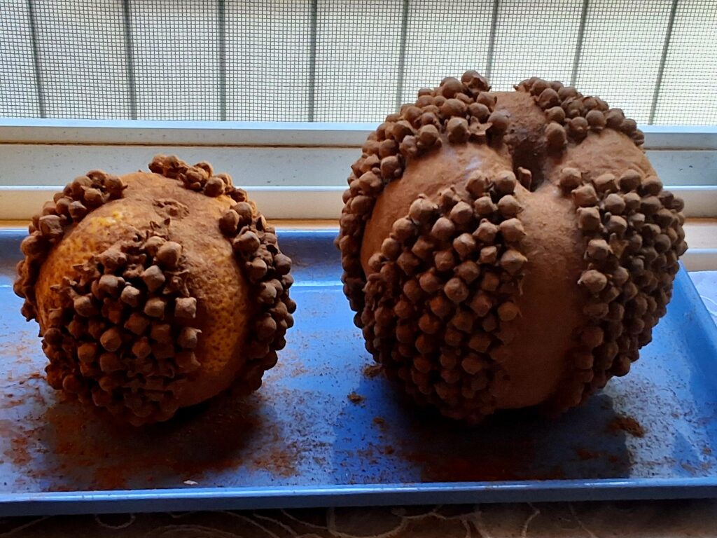 フルーツポマンダーというのは、香りの装飾品で、よく生のオレンジを使って作られるのですが、