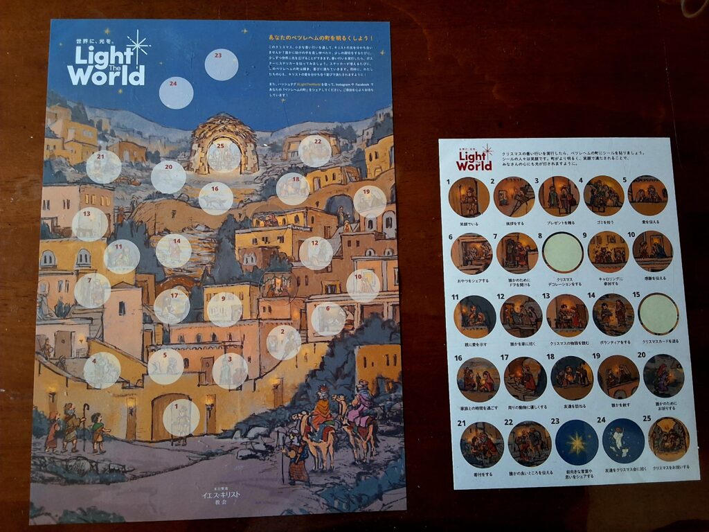 イエスが生まれたとされる、ベツレヘムの町を模した絵が、いわゆるアドベントカレンダーのようになっていて、