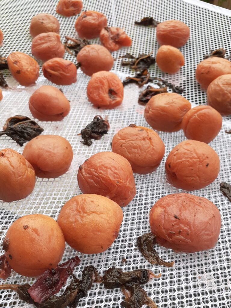 ↑コレはアプリコット梅干しを、ネットで干しているところですが、果肉が柔らかくて、味は梅干しと変わらない出来だったと思います。